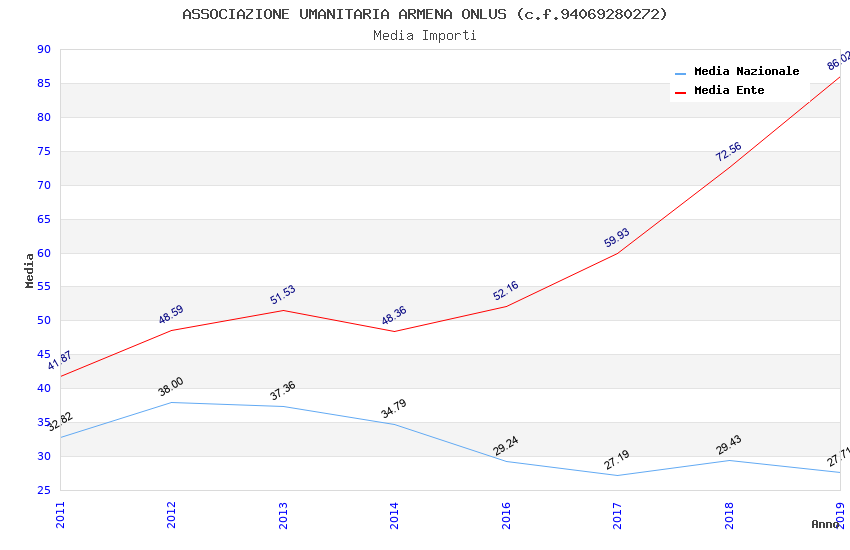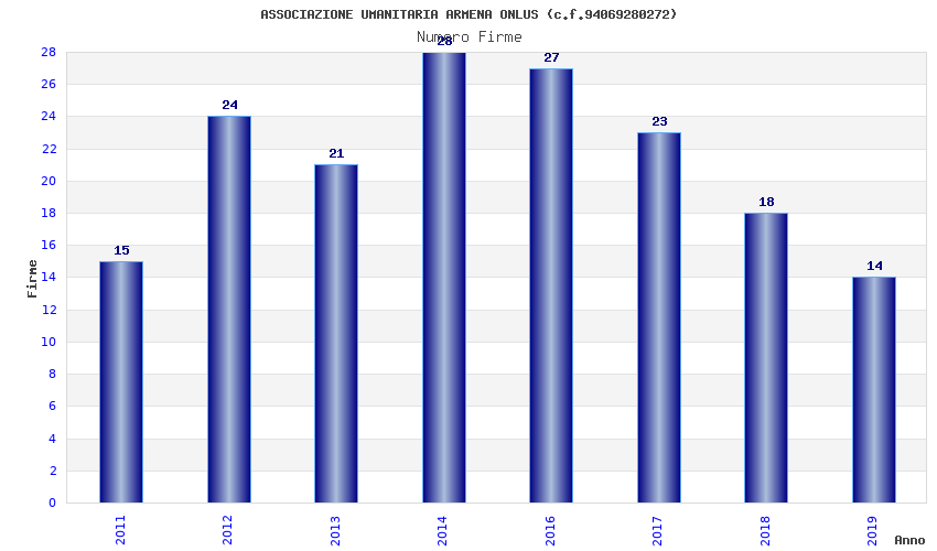 | Anno | Firme | Importi | Media | Naz. | Reg. | Prov. | Comu. |