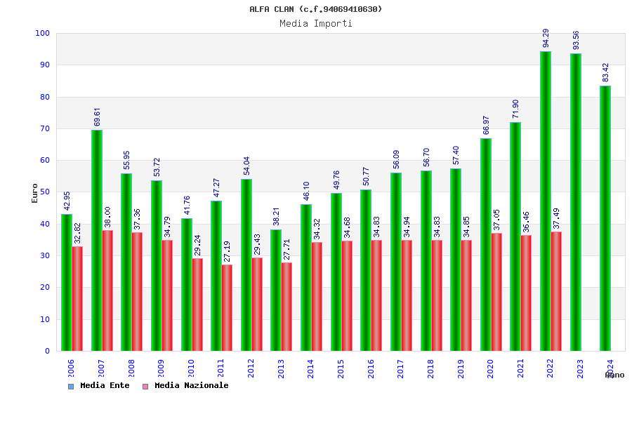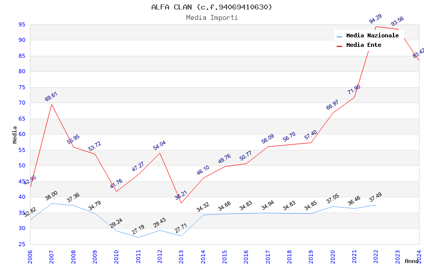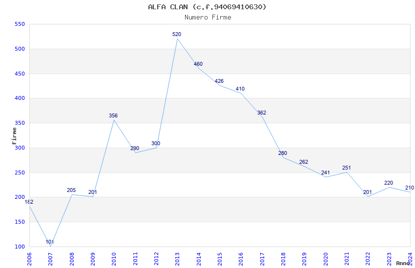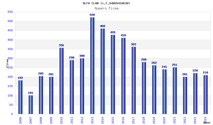 | Anno | Firme | Importi | Media | Naz. | Reg. | Prov. | Comu. |