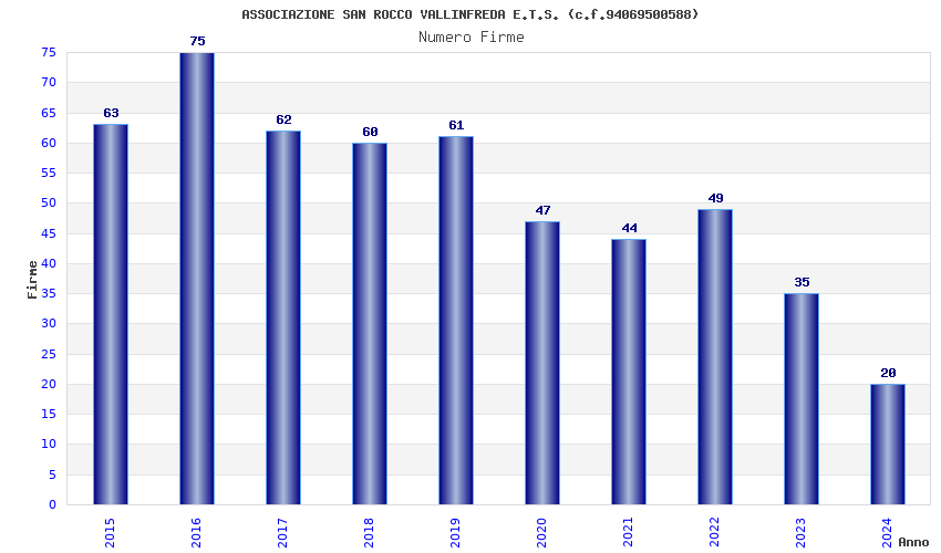 | Anno | Firme | Importi | Media | Naz. | Reg. | Prov. | Comu. |