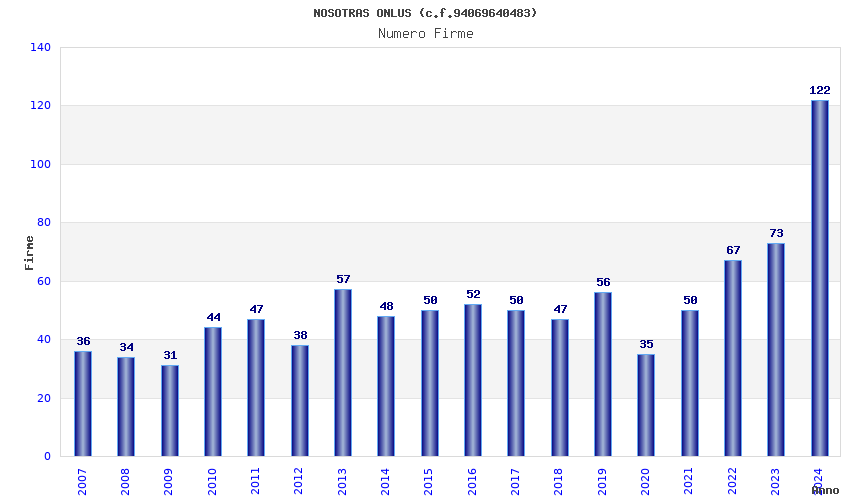 | Anno | Firme | Importi | Media | Naz. | Reg. | Prov. | Comu. |
