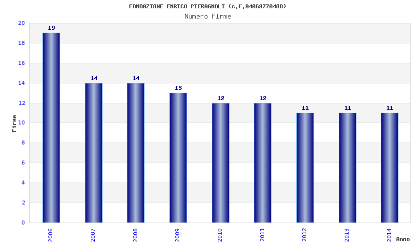 | Anno | Firme | Importi | Media | Naz. | Reg. | Prov. | Comu. |