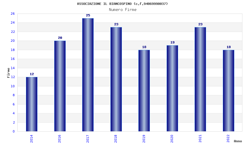 | Anno | Firme | Importi | Media | Naz. | Reg. | Prov. | Comu. |