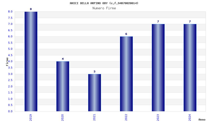 | Anno | Firme | Importi | Media | Naz. | Reg. | Prov. | Comu. |
