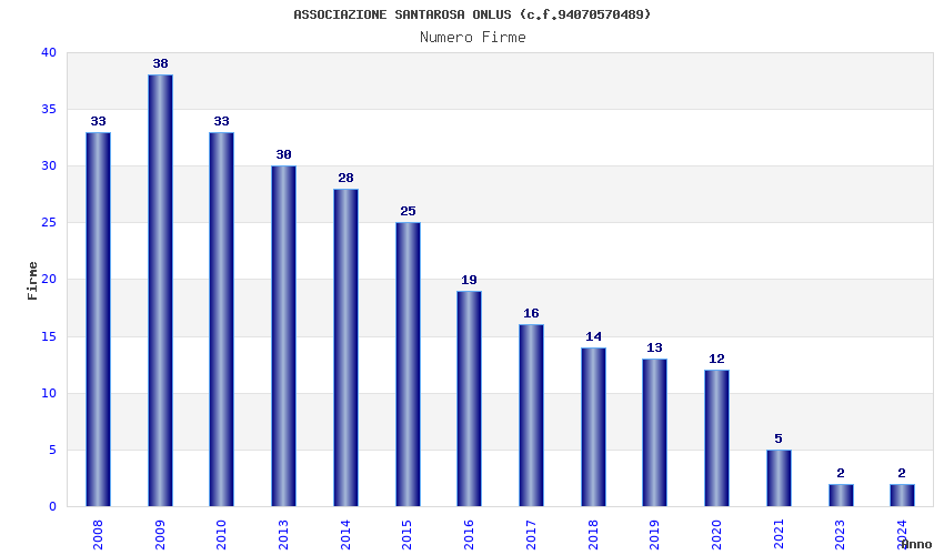 | Anno | Firme | Importi | Media | Naz. | Reg. | Prov. | Comu. |