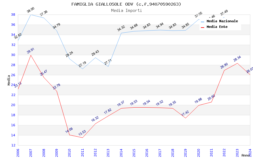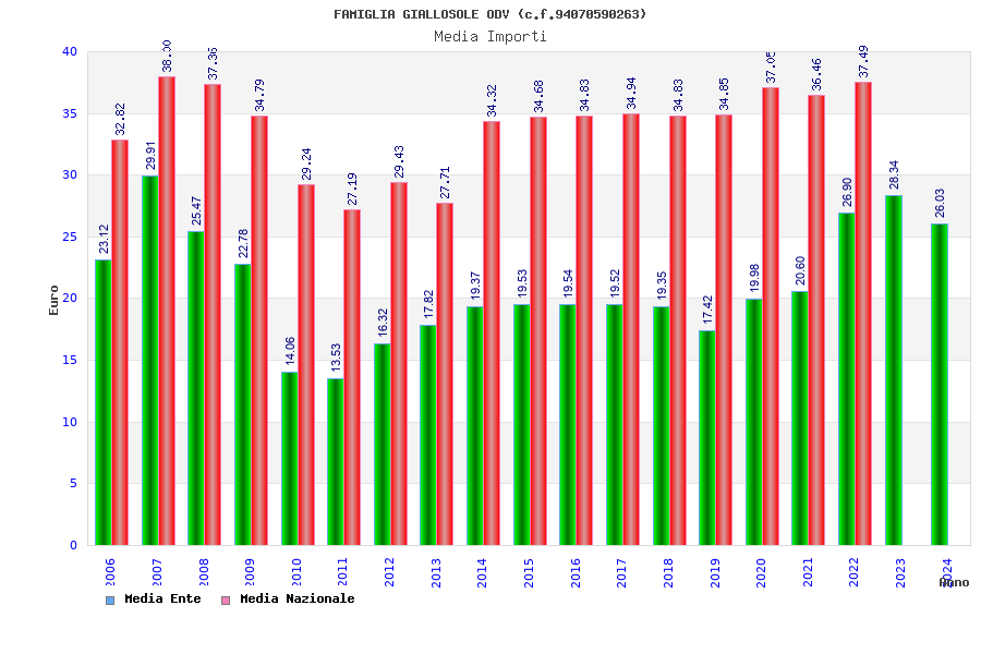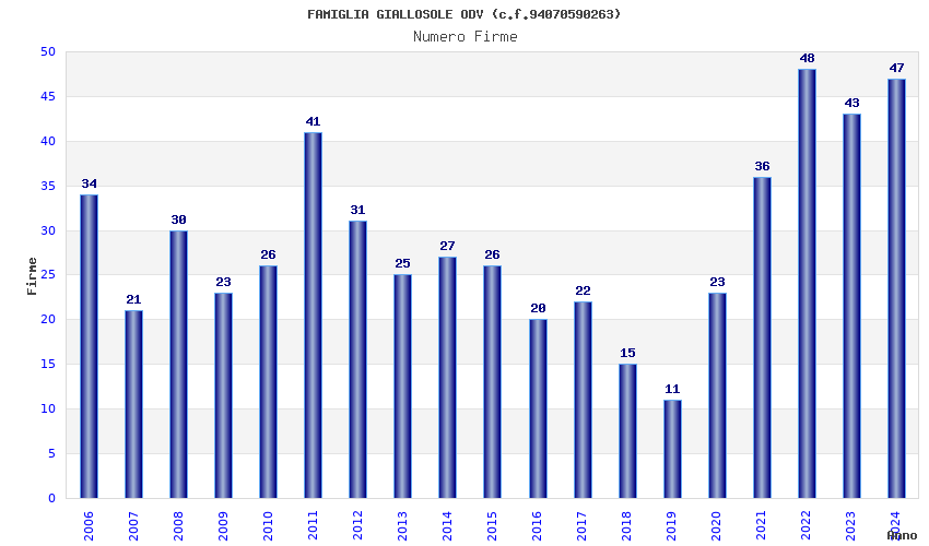 | Anno | Firme | Importi | Media | Naz. | Reg. | Prov. | Comu. |