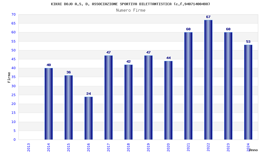 | 2022 | 67 | 3.700,78 | 55,24 | 14.089 | 905 | 275 | 1 |