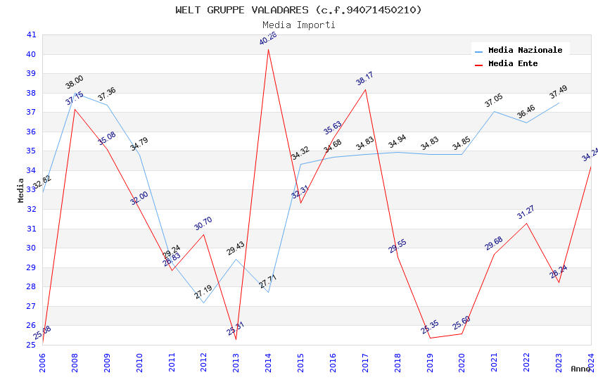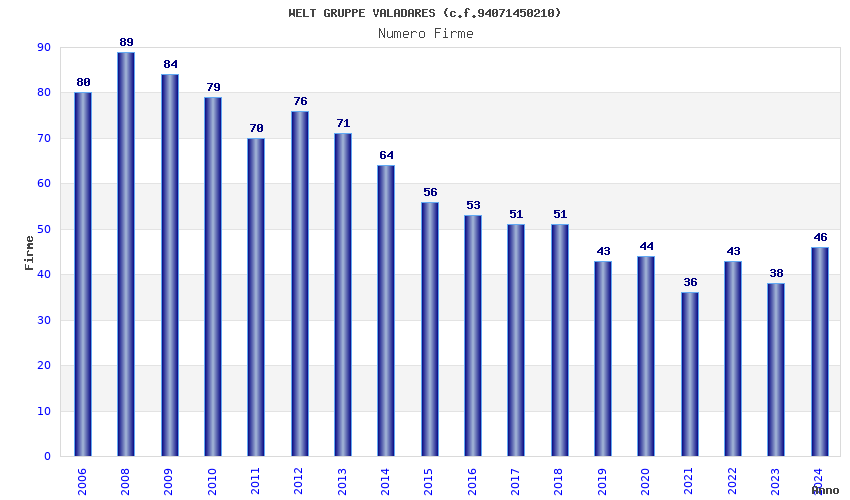 | Anno | Firme | Importi | Media | Naz. | Reg. | Prov. | Comu. |