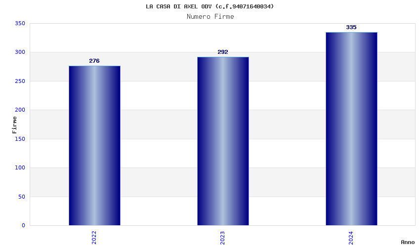 | Anno | Firme | Importi | Media | Naz. | Reg. | Prov. | Comu. |