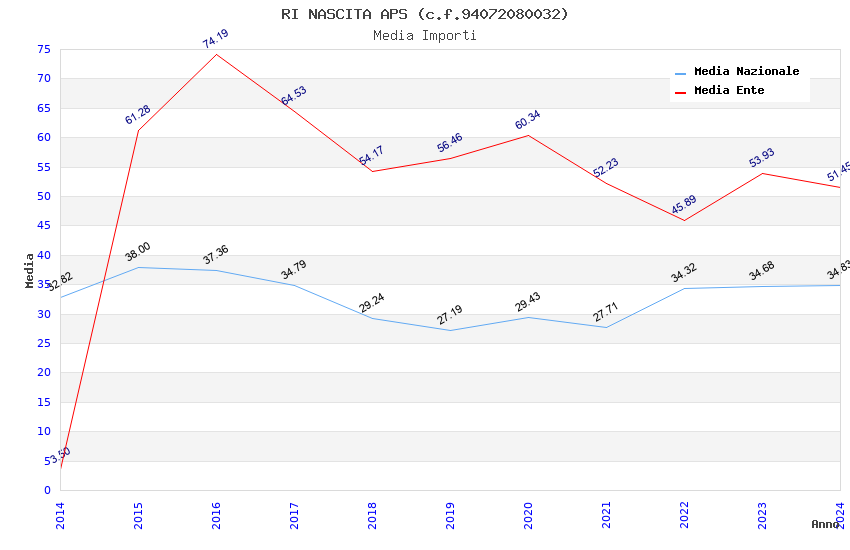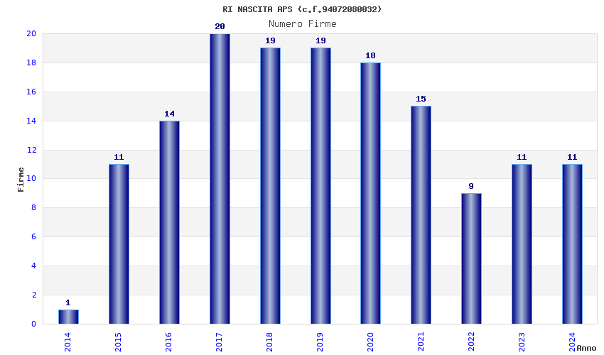 | Anno | Firme | Importi | Media | Naz. | Reg. | Prov. | Comu. |