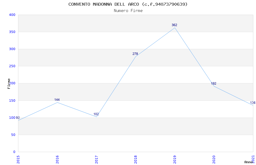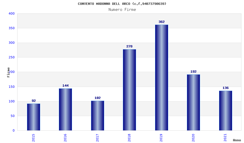 | Anno | Firme | Importi | Media | Naz. | Reg. | Prov. | Comu. |