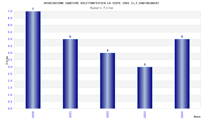 | Anno | Firme | Importi | Media | Naz. | Reg. | Prov. | Comu. |