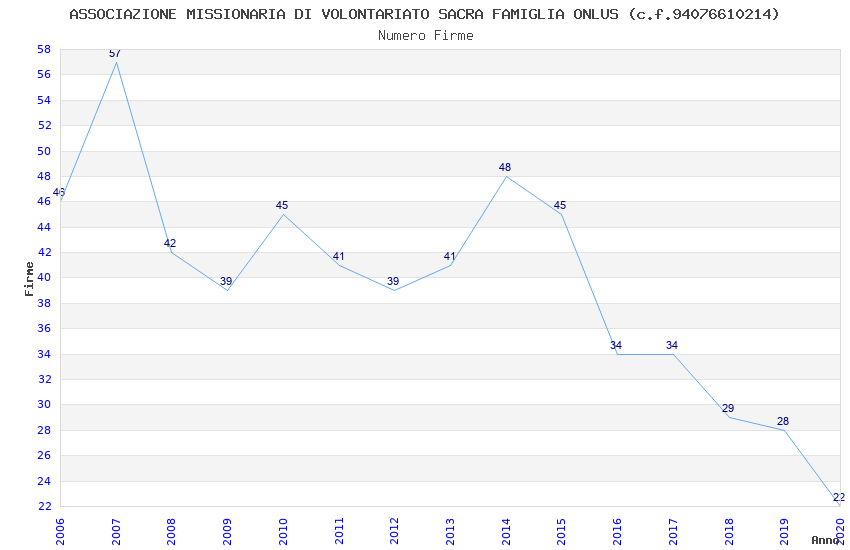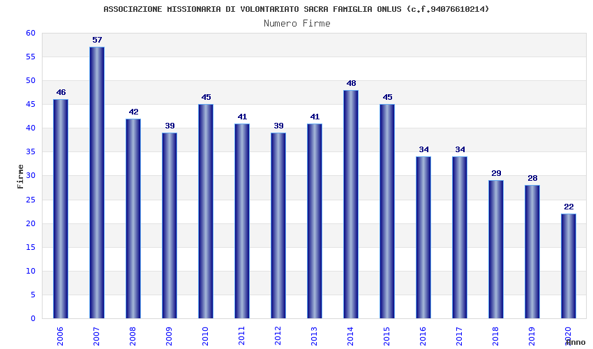 | Anno | Firme | Importi | Media | Naz. | Reg. | Prov. | Comu. |
