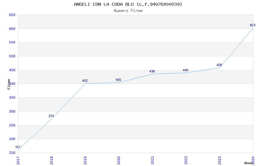 | Anno | Firme | Importi | Media | Naz. | Reg. | Prov. | Comu. |