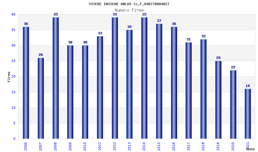 | Anno | Firme | Importi | Media | Naz. | Reg. | Prov. | Comu. |