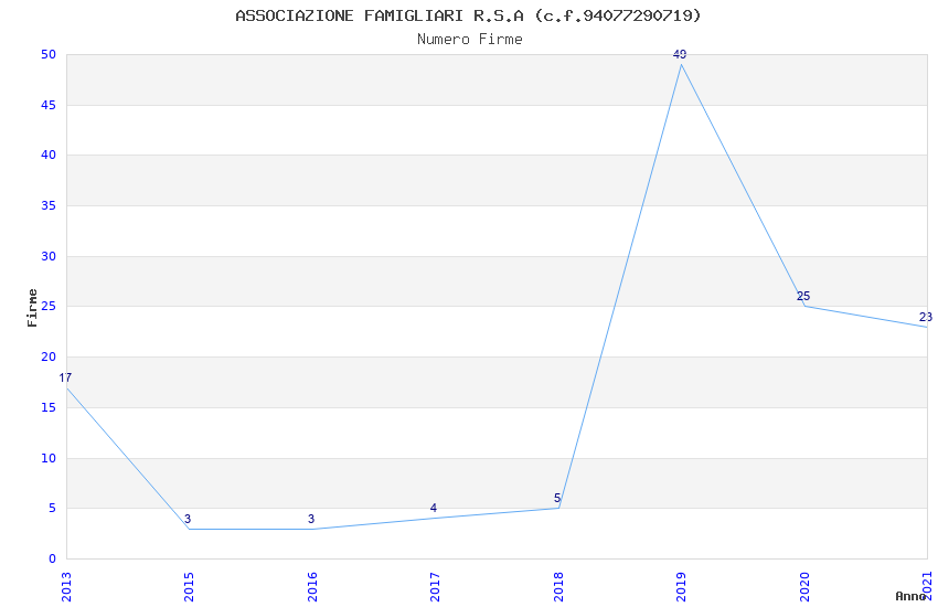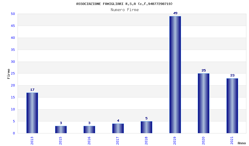 | Anno | Firme | Importi | Media | Naz. | Reg. | Prov. | Comu. |