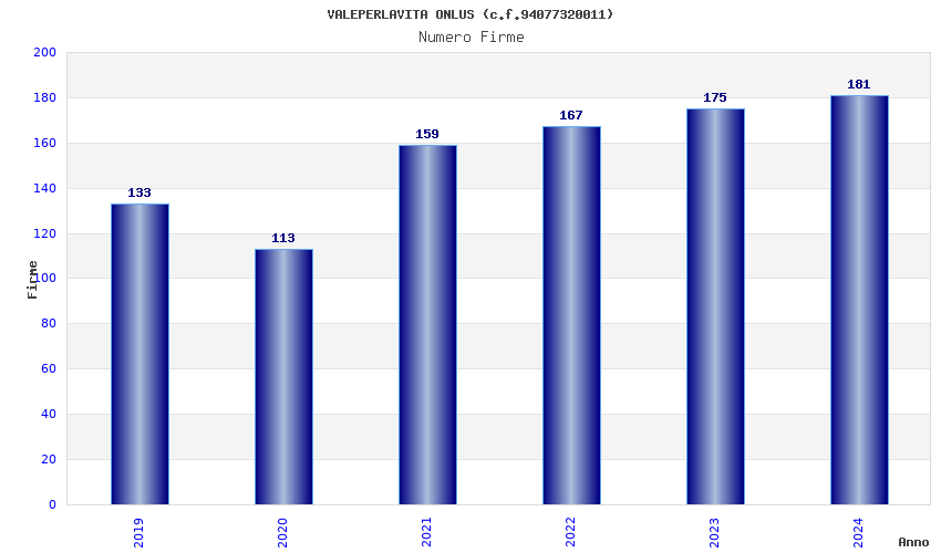 | Anno | Firme | Importi | Media | Naz. | Reg. | Prov. | Comu. |