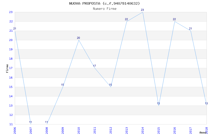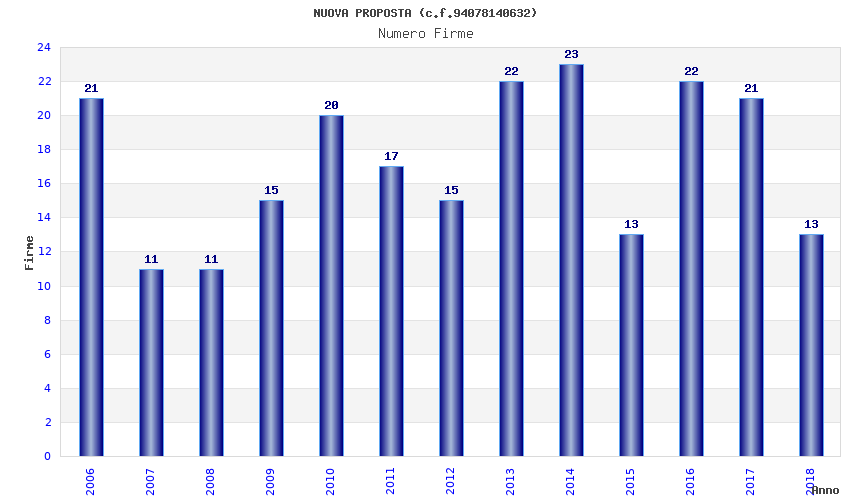 | Anno | Firme | Importi | Media | Naz. | Reg. | Prov. | Comu. |