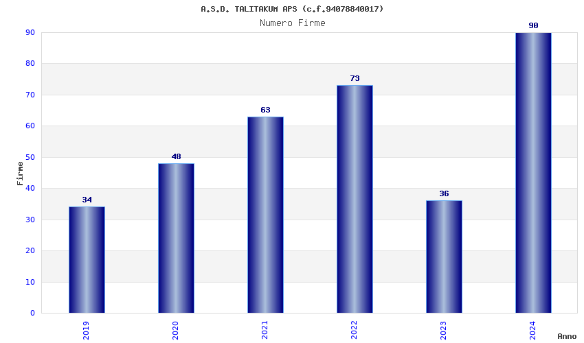 | Anno | Firme | Importi | Media | Naz. | Reg. | Prov. | Comu. |
