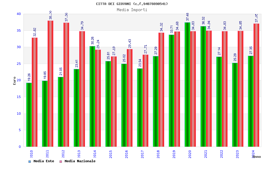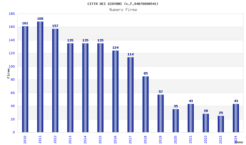 | Anno | Firme | Importi | Media | Naz. | Reg. | Prov. | Comu. |