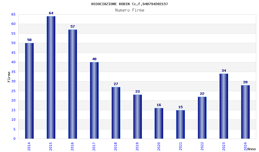 | Anno | Firme | Importi | Media | Naz. | Reg. | Prov. | Comu. |