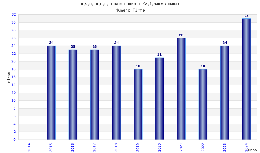 | Anno | Firme | Importi | Media | Naz. | Reg. | Prov. | Comu. |