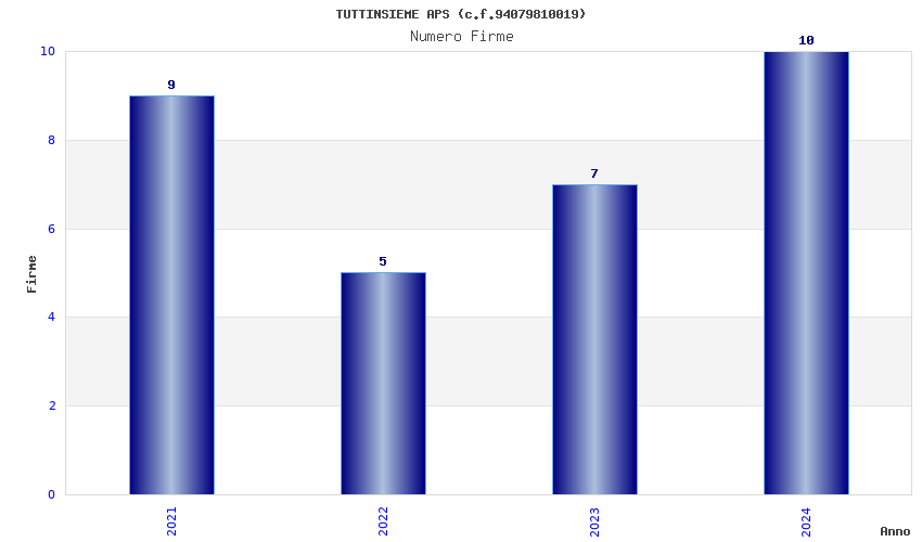 | Anno | Firme | Importi | Media | Naz. | Reg. | Prov. | Comu. |