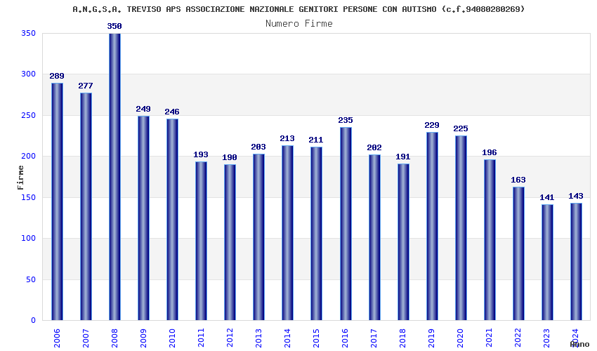 | Anno | Firme | Importi | Media | Naz. | Reg. | Prov. | Comu. |