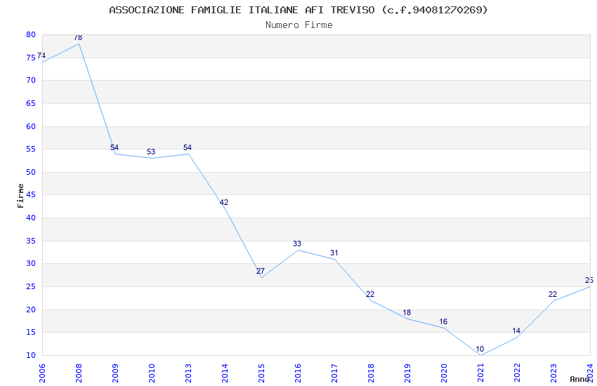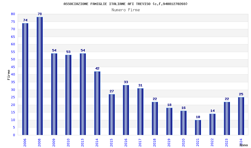 | Anno | Firme | Importi | Media | Naz. | Reg. | Prov. | Comu. |