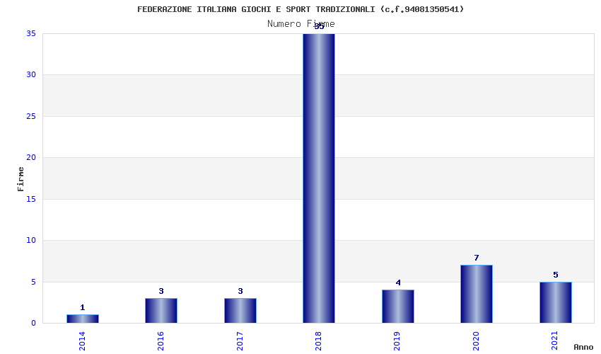 | Anno | Firme | Importi | Media | Naz. | Reg. | Prov. | Comu. |