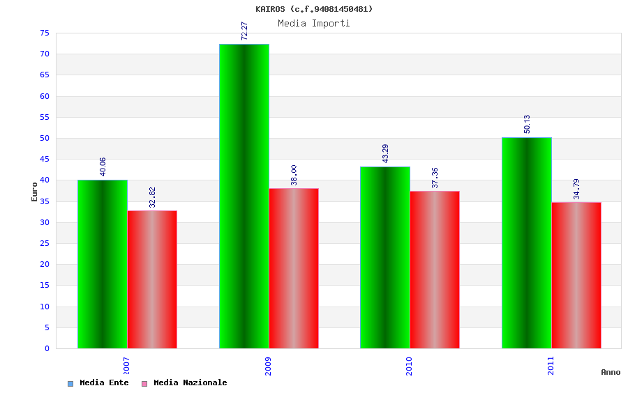 | Anno | Firme | Importi | Media | Naz. | Reg. | Prov. | Comu. |