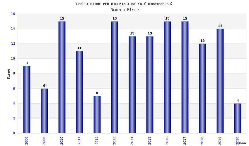 Anno Firme Importi Media Naz. Reg. Prov. Comu.