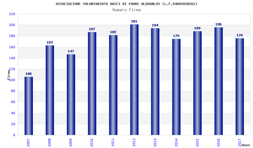 | Anno | Firme | Importi | Media | Naz. | Reg. | Prov. | Comu. |