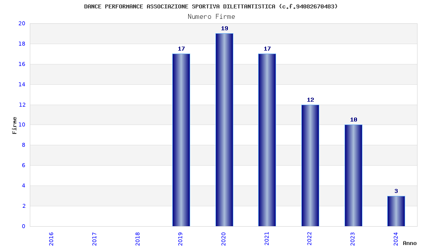 | Anno | Firme | Importi | Media | Naz. | Reg. | Prov. | Comu. |