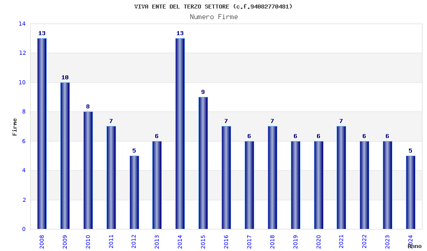 | Anno | Firme | Importi | Media | Naz. | Reg. | Prov. | Comu. |
