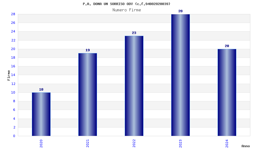 | Anno | Firme | Importi | Media | Naz. | Reg. | Prov. | Comu. |