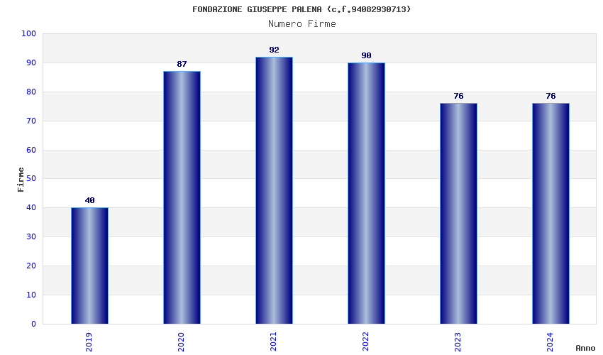 | Anno | Firme | Importi | Media | Naz. | Reg. | Prov. | Comu. |