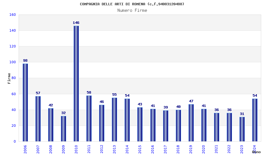 | 2010 | 146 | 3.845,22 | 26,34 | 10.366 | 665 | 217 | 1 |