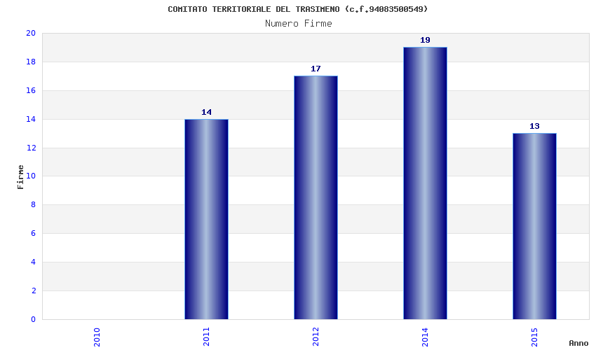 | Anno | Firme | Importi | Media | Naz. | Reg. | Prov. | Comu. |
