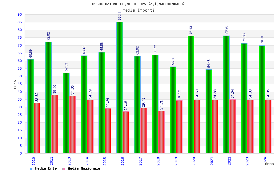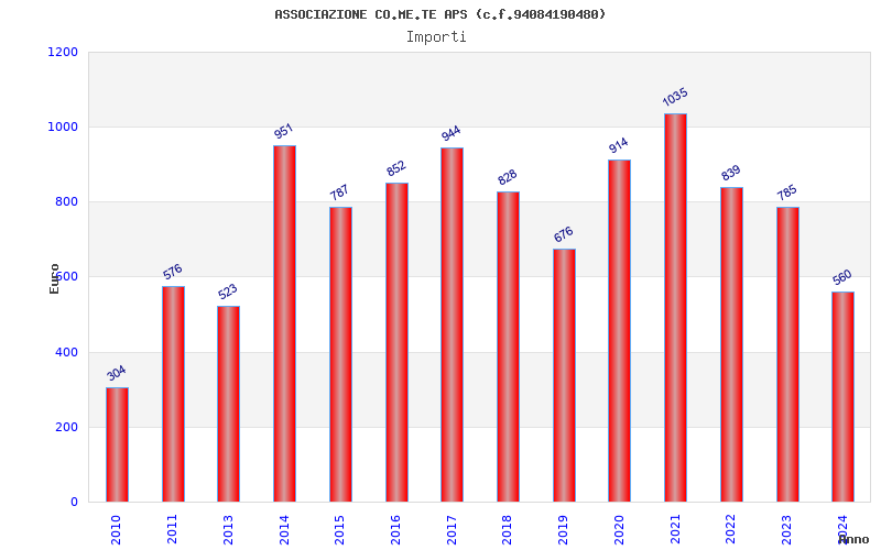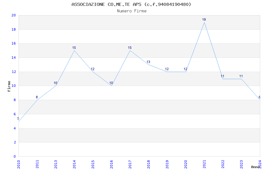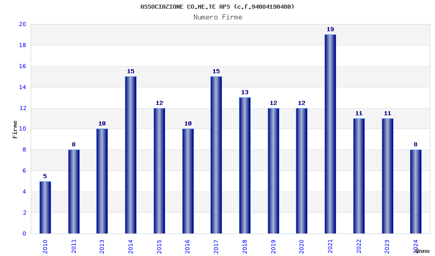 | Anno | Firme | Importi | Media | Naz. | Reg. | Prov. | Comu. |