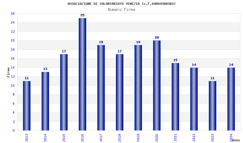 | Anno | Firme | Importi | Media | Naz. | Reg. | Prov. | Comu. |