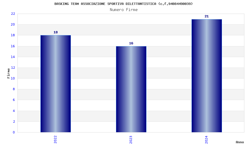 | Anno | Firme | Importi | Media | Naz. | Reg. | Prov. | Comu. |