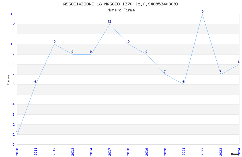 Anno Firme Importi Media Naz. Reg. Prov. Comu.