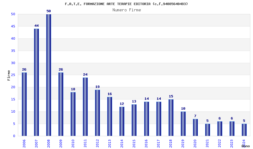 | Anno | Firme | Importi | Media | Naz. | Reg. | Prov. | Comu. |