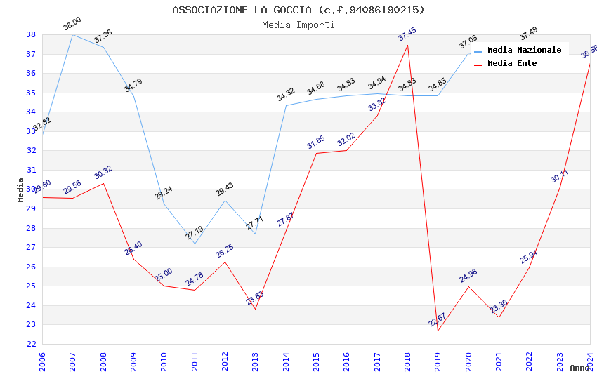| Anno | Firme | Importi | Media | Naz. | Reg. | Prov. | Comu. |