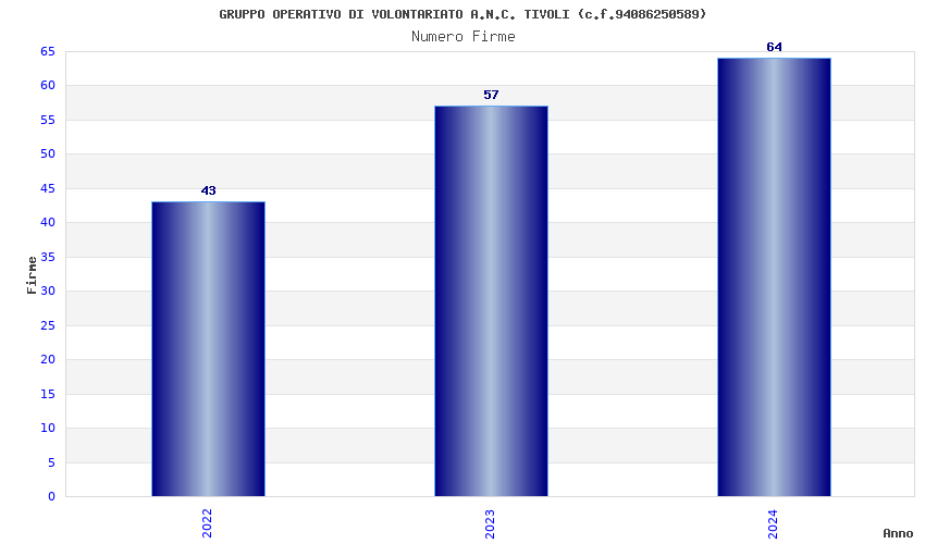 | Anno | Firme | Importi | Media | Naz. | Reg. | Prov. | Comu. |