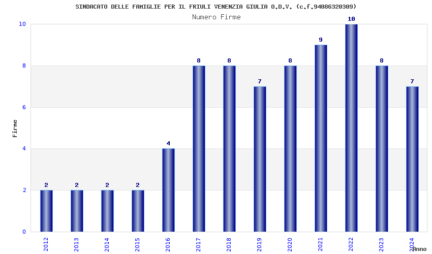 | Anno | Firme | Importi | Media | Naz. | Reg. | Prov. | Comu. |