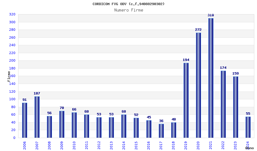 | 2021 | 310 | 5.967,47 | 19,25 | 9.086 | 156 | 69 | 25 |