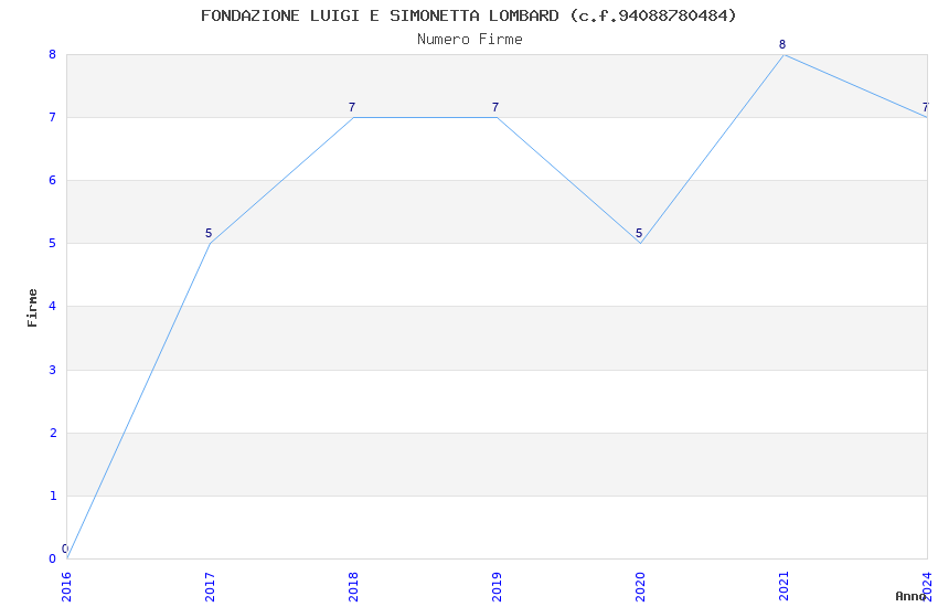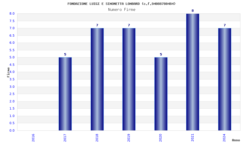 | Anno | Firme | Importi | Media | Naz. | Reg. | Prov. | Comu. |