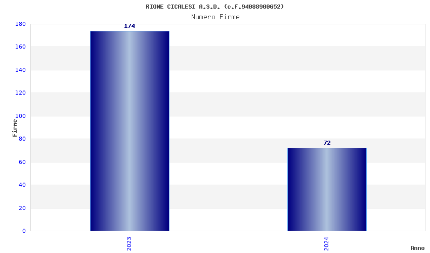 | Anno | Firme | Importi | Media | Naz. | Reg. | Prov. | Comu. |