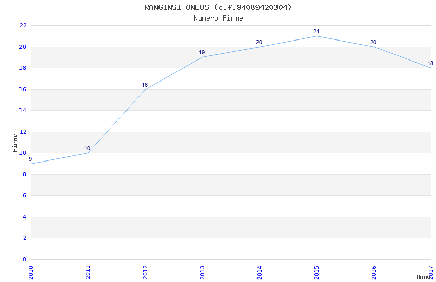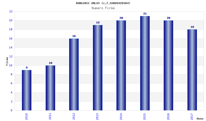 | Anno | Firme | Importi | Media | Naz. | Reg. | Prov. | Comu. |